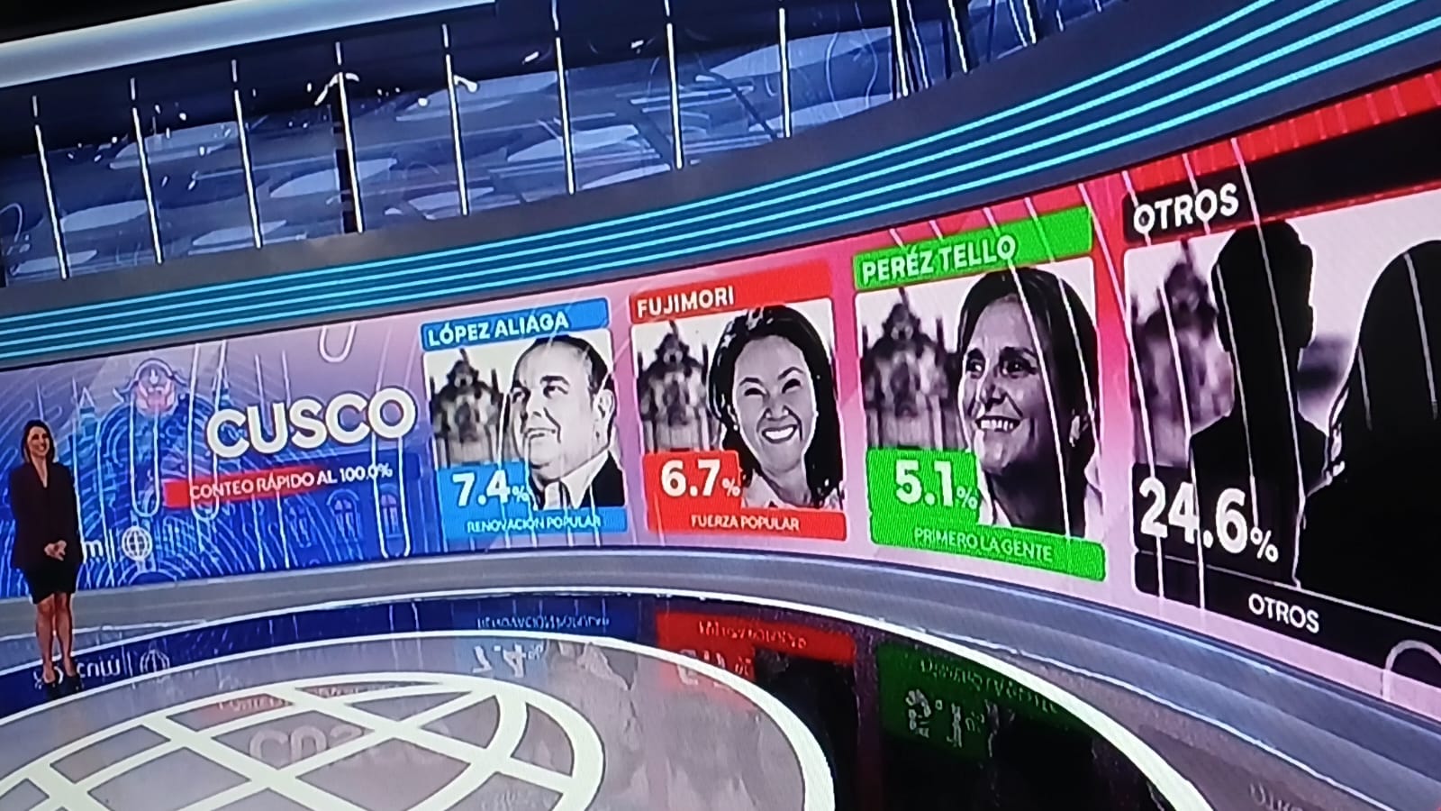 En cuanto a la región del Cusco, el cual nos interesa más, según la mencionada encuestadora al 100% al conteo López Chau 15.6%, Ricardo Belmont 14.8%, Jorge Nieto 13.9%, Roberto Sánchez 11.9%, López Aliaga 7.4%, Keiko Fujimori 6.7% Marisol Pérez Tello 5.1% y otros partidos 24.6%, respectivamente.