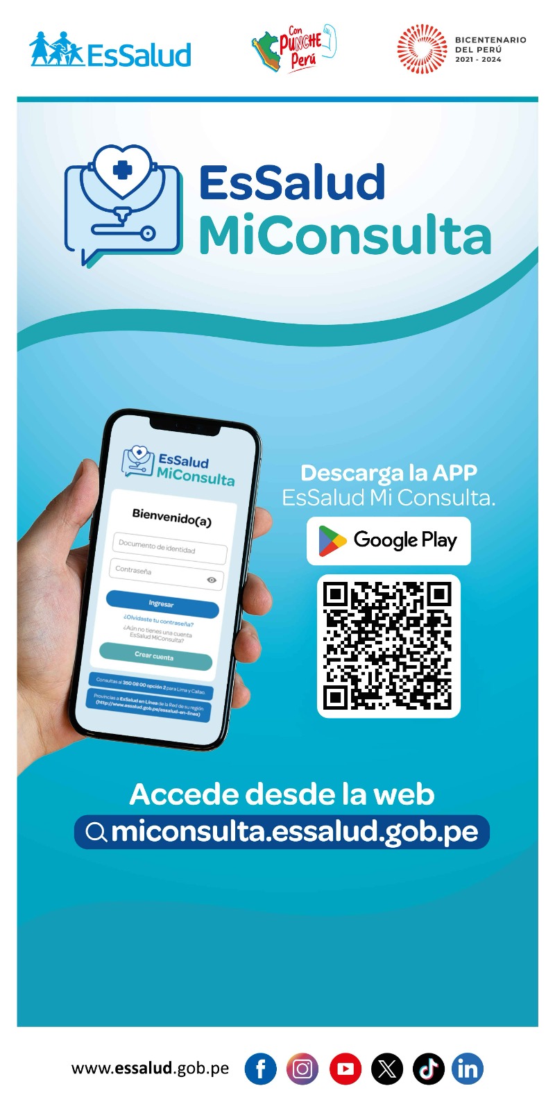 #cusco#aprimerahora.com.- La Gerencia de la Red Asistencial de EsSalud Cusco a través de la Dirección del Hospital Nacional Adolfo Guevara Velasco, informan a la población asegurada y sus derechohabientes que se encuentra disponible el aplicativo móvil “EsSalud, Mi Consulta”, una herramienta digital que facilita el acceso a los servicios de salud y acerca la atención médica a los usuarios.
