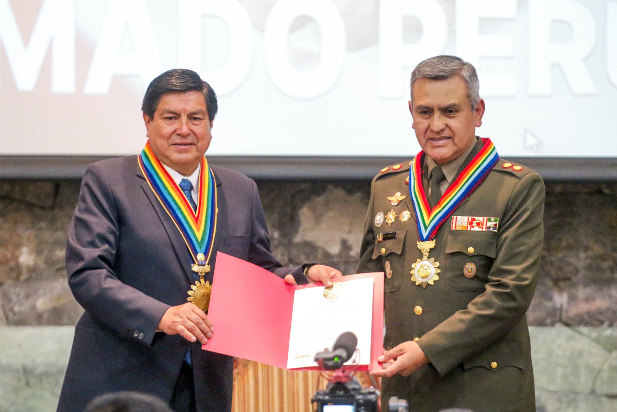 #aprimerahora# cusco.- En ceremonia publica que se realizo ayer en el salón de convenciones de la Municipalidad provincial del Cusco, el alcalde Luis Pantoja en una clara muestra de congraciarse con los altos jefes de la policía Nacional y de la Quinta brigada de Montaña los distinguió con la medalla de Alcaldia.