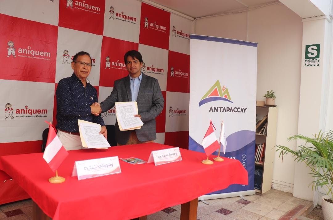 #cusco# aprimerahora.- Un descuido en casa puede dejar huellas imborrables en la vida de un niño. Sin embargo, la solidaridad y el reciclaje pueden convertir el dolor en esperanza. En esa línea, Compañía Minera Antapaccay y la Asociación de Ayuda al Niño Quemado (ANIQUEM) firmaron un Convenio Marco de Cooperación Interinstitucional que impulsará la rehabilitación de niños sobrevivientes de quemaduras mediante el programa “Reciclar para Ayudar”.