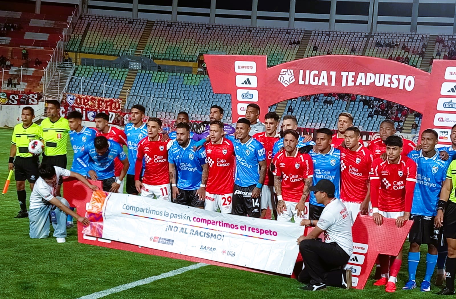 #cusco#aprimerahora.com.- Los principales equipos cusqueños de fútbol profesional, Club Cienciano y Deportivo Garcilaso, se sumaron el último fin de semana a la campaña nacional “Compartimos la pasión, compartimos el respeto. ¡No al racismo!”, impulsada por el Ministerio de Cultura, la Liga 1 y la Agremiación de Futbolistas Profesionales del Perú (SAFAP), con el objetivo de prevenir y erradicar la discriminación racial en el fútbol peruano.