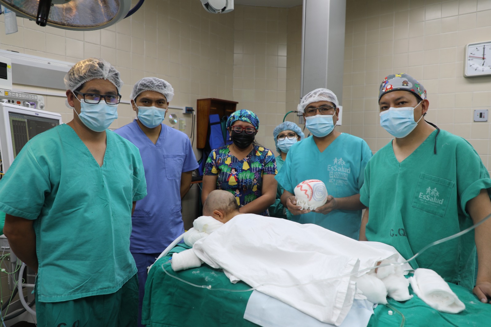 #cusco# apriemrahora.- El equipo de especialistas en neurocirugía del Hospital Nacional Adolfo Guevara Velasco, recientemente realizo una gran hazaña medica al realizar una delicanda intervención quirúrgica de una cráneoplastia a una neonata que tenía una deformación craneana, utilizando por primera vez una maqueta 3D con resultados inmediatos y satisfactorios.