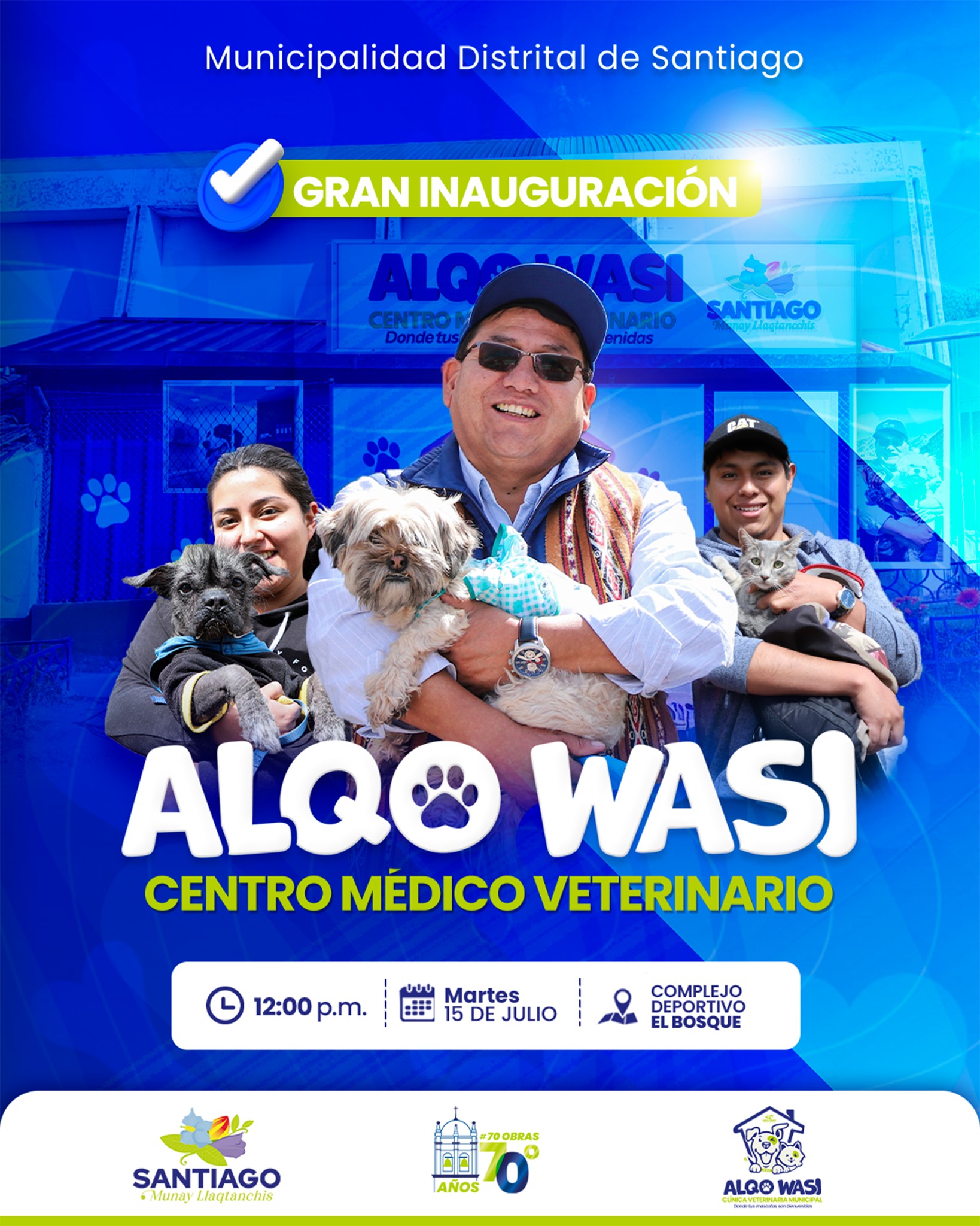 La ceremonia esta programada para las 12:00 del medio dia, precisando que el Alqo Wasi contará con atención veterinaria permanente, reafirmando nuestro compromiso con la salud animal, la tenencia responsable y la protección de quienes no tienen voz.