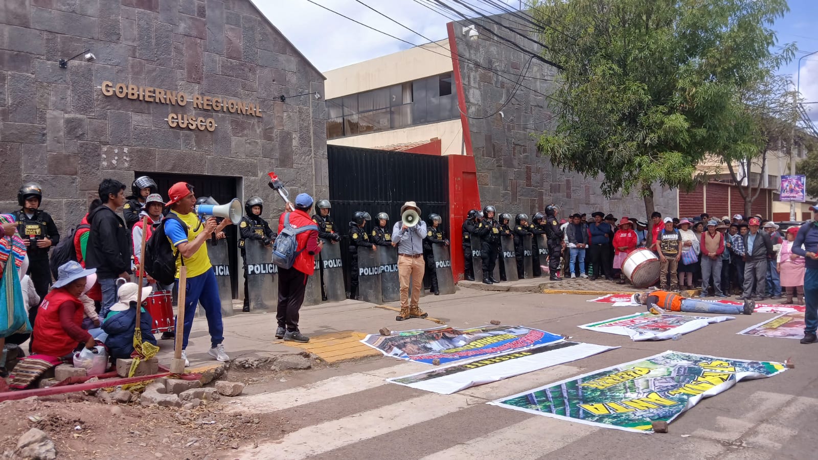 Werner, «devuelve el lechón» en voz alta, pancartas en mano y banderolas los manifestantes recorrieron por la diferentes arterias de la ciudad, llegando hasta la sede del gobierno regional del Cusco, donde realizaron un plantón de protesta y se instalo la mesa de dialogo