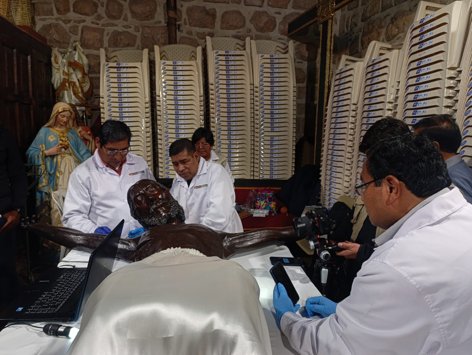 #cusco”#aprimerahora.com.- Un equipo de profesionales de la Dirección Desconcentrada de Cultura de Cusco en estos días realizan los trabajos de limpieza, mantenimiento y conservación integral de la venerada imagen del Señor de los Temblores, con el objetivo de garantizar su adecuado estado de conservación con miras a las celebraciones de Semana Santa.