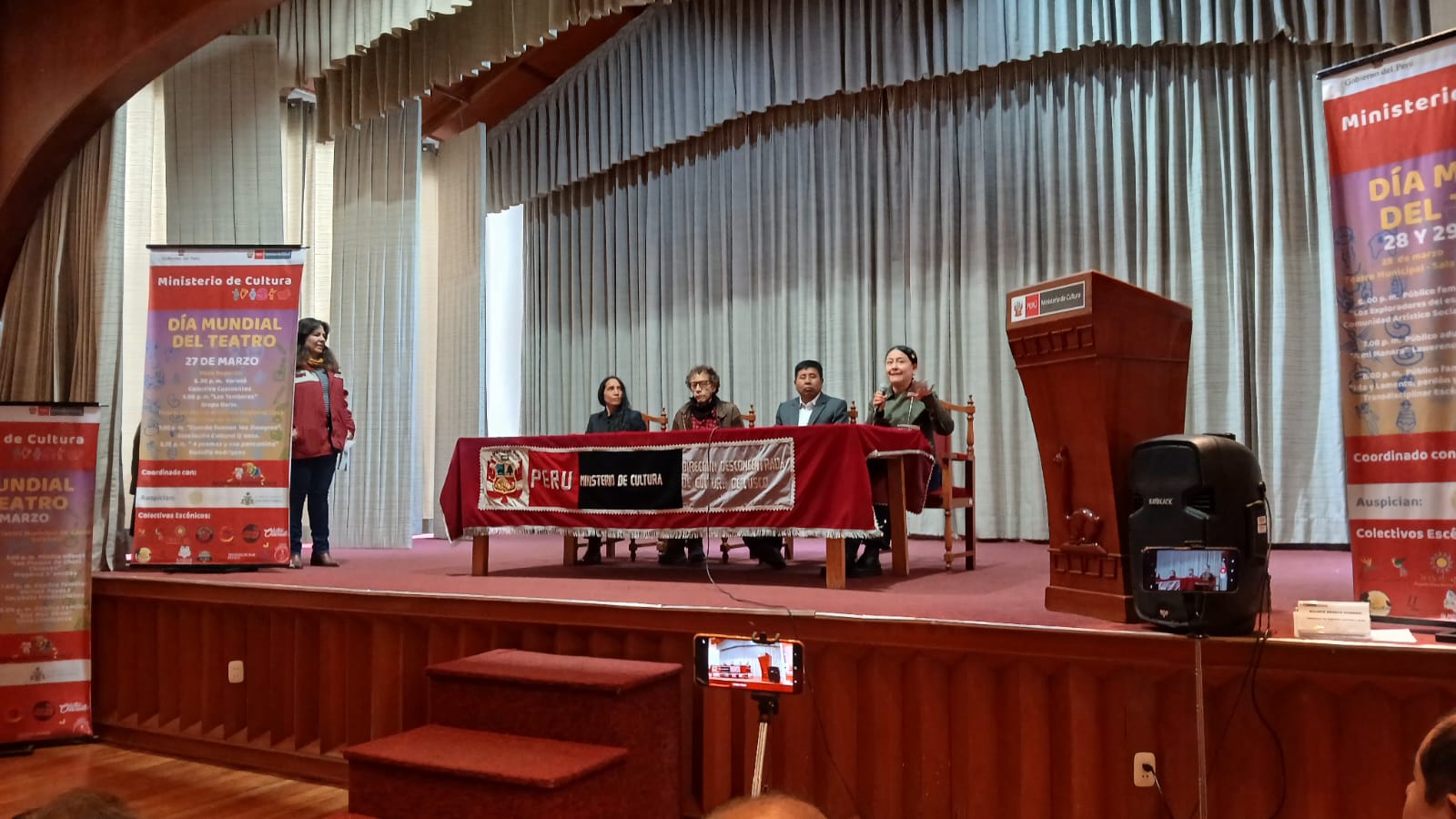 #cusco#aprimerahora.com.- Funcionarios de la dirección de Cultura del Cusco junto a los representantes de la Asociación de Teatro, ayer en conferencia de prensa lanzaron el primer encuentro de celebración del día mundial del teatro cusqueño y esta será en forma gratuita